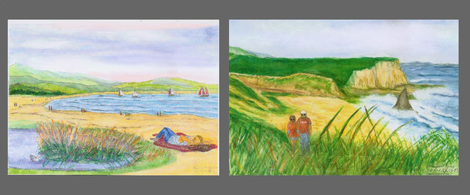 Dagmar am Strand von Santa Barbara - Lasse und Eva am Strand von Davenport (Kalifornien)